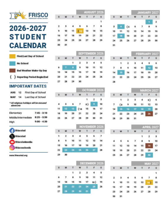 Dallas Stars Elite College Prep will follow the Frisco ISD Academic Calendar, Monday through Friday