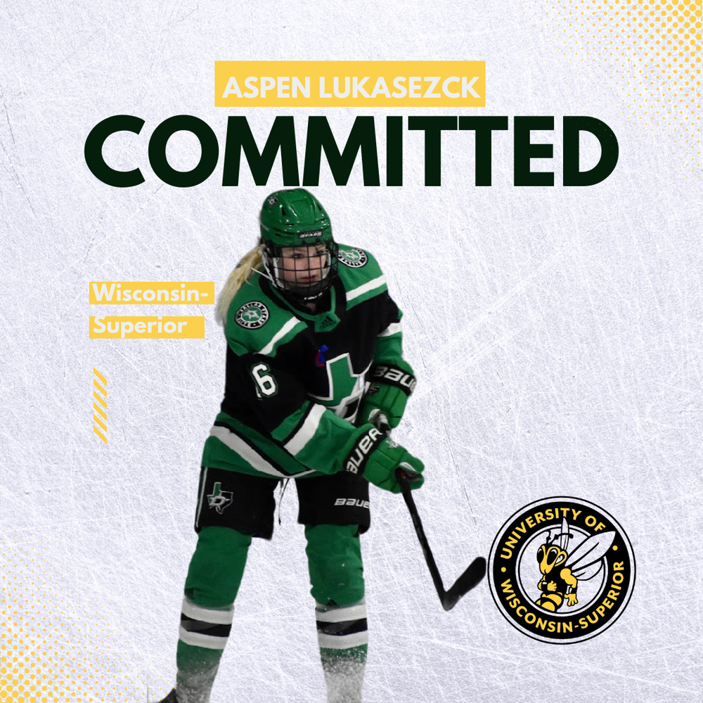 We are excited to announce that Aspen Lukasezck, daughter of Bryan and Scarlet Lukasezck, has committed to the University of Wisconsin-Superior to continue her hockey career and pursue a degree in Communications Multi-Media Journalism starting in Fall 2025!