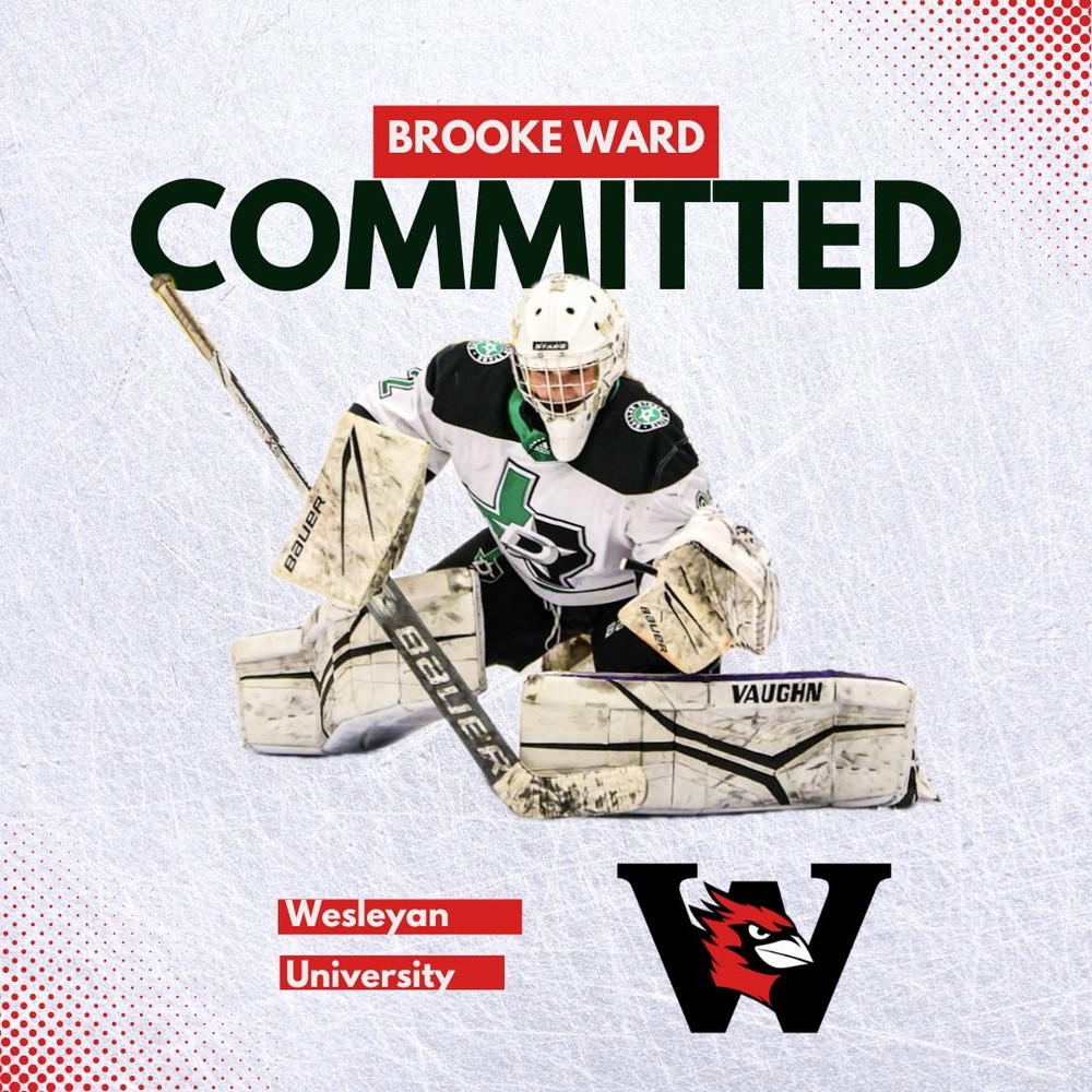 We are excited to announce that Brooke Ward, daughter of Bruce and Kimberly Ward, has committed to Wesleyan University to continue her hockey journey and pursue a degree in Engineering starting in 2025!